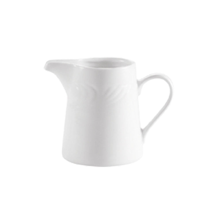 The CAC China RSV-PC Roosevelt Creamer is a meticulously crafted piece of porcelain with a capacity of 6 ounces, making it an essential addition to any dining setting. Measuring 3-3/4 inches in length, 2-1/4 inches in width, and 3-1/2 inches in height, this creamer is designed to provide both functionality and elegance. It features a convenient handle and is embossed for an added touch of sophistication. The Super White finish ensures it complements various tableware styles while maintaining a clean and polished appearance. As a testament to its versatility, the Roosevelt Creamer is dishwasher, oven, and microwave safe, accommodating diverse service needs in both professional and home environments. Sold by the case, with 3 dozen packed per case, it caters to high-volume usage for restaurants, cafés, and catering businesses. The durable porcelain construction promises long-lasting performance, making it a reliable choice for establishments that require consistent quality. Whether employed in a bustling café or a serene home kitchen, the CAC China RSV-PC Roosevelt Creamer stands out as a practical and stylish solution, seamlessly integrating into any setting with its refined design and robust functionality.