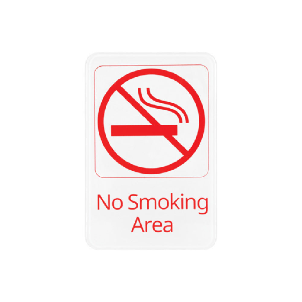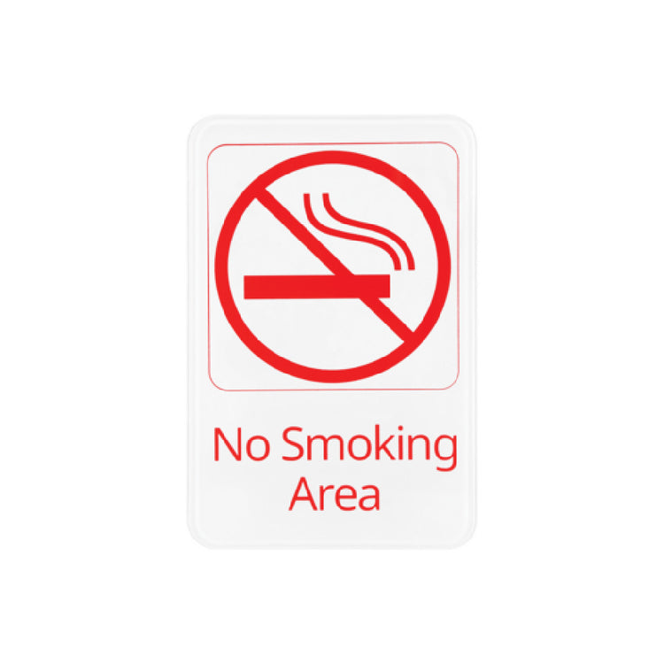 The CAC China SCE9-NM05 Compliance Sign English 6" x 9"H is a functional and essential tool for maintaining smoke-free environments in various settings. This compliance sign is expertly crafted from heavy-duty plastic, ensuring durability and long-lasting use. Measuring 6 inches in width and 9 inches in height, it is designed to be clearly visible, conveying the important "No Smoking Area" message effectively in English. The sign comes equipped with pressure-sensitive self-adhesive tape, facilitating easy and secure installation on various surfaces, making it a versatile choice for different locations. Its white color enhances visibility, ensuring that the compliance message stands out. Packed by 72 each per case, this product is an ideal solution for businesses, healthcare facilities, and educational institutions that require multiple units to enforce non-smoking policies across extensive areas. The CAC China SCE9-NM05 Compliance Sign is not only practical but also demonstrates a commitment to health and safety by clearly marking designated non-smoking zones, thus contributing to a healthier environment for everyone. Its robust construction and practical design make it a valuable asset in promoting compliance with established smoking regulations in a variety of public and private spaces.