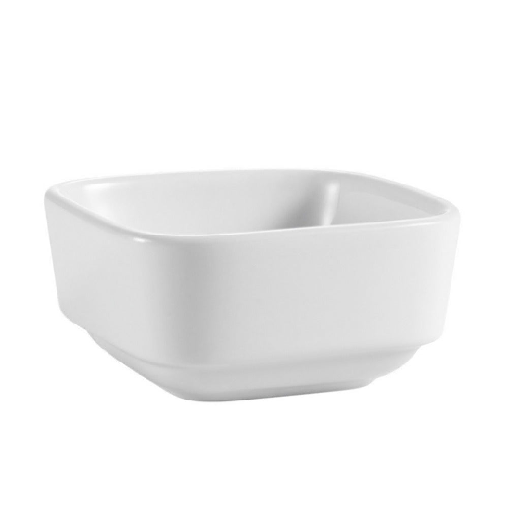 The CAC China SHA-Q3 Sushia Bowl is a high-quality porcelain dish with a capacity of 4-1/2 oz., measuring 3-1/2 inches in length and width, and standing 1-3/4 inches tall. This square-shaped bowl is designed for efficient storage, being stackable, and offers versatile use with its dishwasher, oven, and microwave-safe properties. Its Super White finish provides a sleek, modern look, making it suitable for a variety of dining settings, from casual eateries to upscale restaurants. Sold by the case, this product is packed with 4 dozen bowls per case, catering to the needs of busy food establishments that require robust and reliable dinnerware solutions. The combination of its compact size and durable construction makes it an ideal choice for serving small portions, appetizers, or individual delicacies, especially in sushi restaurants or Asian cuisine dining environments. This Sushia Bowl's design effectively balances aesthetics with functionality, ensuring it meets the demands of the food service industry while enhancing the presentation of culinary creations.
