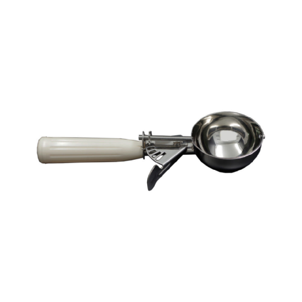 The CAC China SICD-10IV Thumb Disher #103.2 Oz. Stainless Steel Scoop is a specialized kitchen tool designed for precision and durability, catering to diverse culinary needs. Featuring a #10 size and a 3.2 oz. capacity, this scoop is ideal for consistent portion control, making it a valuable asset for professional kitchens, catering services, and food establishments seeking accuracy in serving. Constructed from high-quality stainless steel, the scoop ensures long-lasting performance and resistance to corrosion, maintaining its reliability in high-demand environments. The ivory handle provides a comfortable grip, enhancing ease of use for rapid and repetitive tasks, essential for high-volume food service operations. Additionally, the CAC China Thumb Disher is NSF certified, underscoring its adherence to strict public health and safety standards, offering peace of mind in food safety compliance. Packaged in quantities of 36 per case, this scoop is an efficient choice for businesses looking to stock up on quality kitchen tools. Whether utilized in restaurants, bakeries, or institutional kitchens, the CAC China SICD-10IV Thumb Disher stands out for its precision engineering and practical design, making it an indispensable tool for culinary professionals who prioritize consistency and quality in their food presentation.