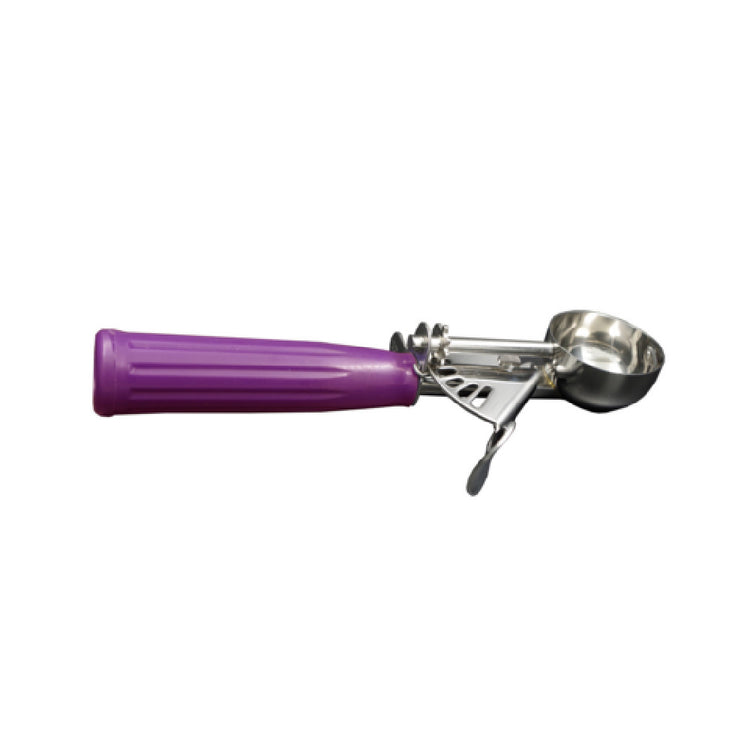 The CAC China SICD-40OD Thumb Disher #40-0.72 oz. Stainless Steel Scoop is a versatile tool designed for precision and durability across various market segments within the food service industry. Crafted from high-quality stainless steel, this scoop ensures longevity and resistance to rust, making it ideal for both commercial kitchens and home use. The #40 disher size translates to approximately 0.72 ounces per scoop, providing consistent portion control for dishes ranging from ice cream to mashed potatoes. This feature is particularly beneficial in maintaining standardized serving sizes, crucial for restaurant operations focused on cost management and nutritional consistency. The orchid handle of the scoop not only adds an aesthetic touch but also enhances grip, ensuring comfort during extended use. Certified by NSF, the scoop meets rigorous public health and safety standards, which is essential for establishments prioritizing reliable and hygienic kitchen tools. Packed by 36 each per case, this product presents an economical choice for bulk purchasing, advantageous for large scale operations or institutional dining services. The CAC China SICD-40OD Thumb Disher stands out for its combination of precision, durability, and aesthetic appeal, making it an indispensable asset for diverse food service applications.