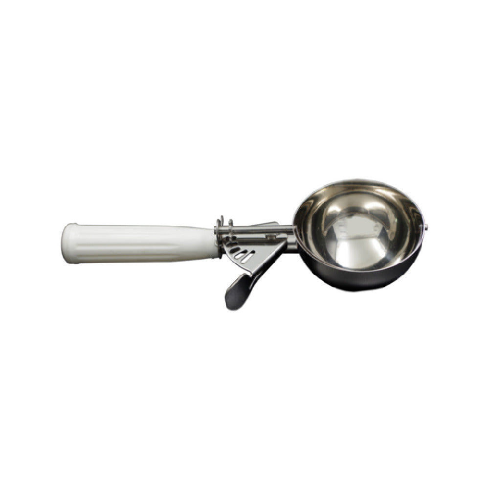 The CAC China SICD-6WT Thumb Disher #65 Oz. Stainless Steel Scoop is an essential tool for professionals across various culinary sectors, providing both reliability and efficiency. Designed with a focus on functionality, this thumb disher features a white handle that ensures a comfortable and secure grip, making it ideal for extended use in bustling kitchen environments. The scoop is crafted from high-quality stainless steel, offering robust durability and resistance to corrosion, which is critical for maintaining hygiene standards and ensuring longevity. With a #6,5 oz. capacity, this scoop allows for precise portion control, an attribute highly valued in institutions like restaurants, cafeterias, and catering services where consistency is key. Packed by 36 each per case, it caters to large-scale operations requiring multiple units. The NSF certification highlights its compliance with public health standards, making it a trusted choice for the food industry. Its design and specifications cater to both high-volume commercial kitchens and smaller establishments seeking reliable kitchen tools. The CAC China SICD-6WT Thumb Disher combines ergonomic design with rigorous standards, offering a valuable solution for diverse market segments within the food service industry.