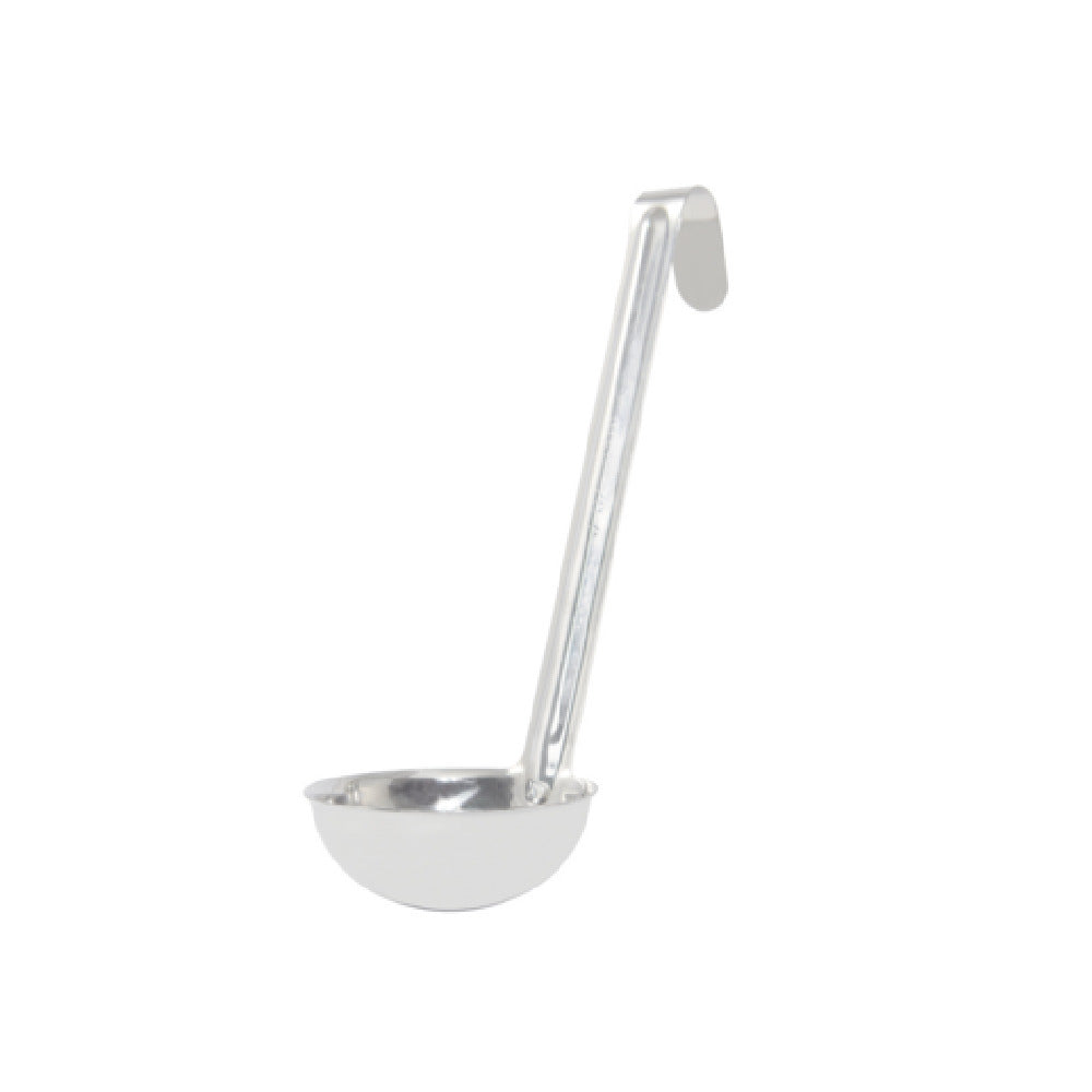 The CAC China SLD6-30 ladle is a meticulously designed kitchen tool featuring a 3 oz. bowl and a 6-inch hooked handle, crafted from one-piece stainless steel. This ladle is engineered to meet the demands of professional kitchens, offering durability and precision in serving. Its stainless steel construction ensures longevity and resistance to corrosion, making it suitable for frequent use in catering businesses, restaurants, and hospitality industries. The 3 oz. bowl is ideal for portion control, helping chefs maintain consistency in servings, while the 6-inch hooked handle provides an ergonomic grip and convenient storage by allowing it to be hung easily when not in use. Packed by 120 each per case, it caters to high-volume operations requiring efficient kitchen tools. The all-in-one design of this ladle eliminates the need for assembly, minimizing any potential weak points that could lead to breakage. Its sleek and functional design makes it a versatile addition to any kitchen setting, capable of handling both liquid and semi-solid servings with ease. The CAC China SLD6-30 ladle is an indispensable tool that combines practicality with high-standard manufacturing, designed to support chefs in delivering excellent culinary experiences across various market segments.