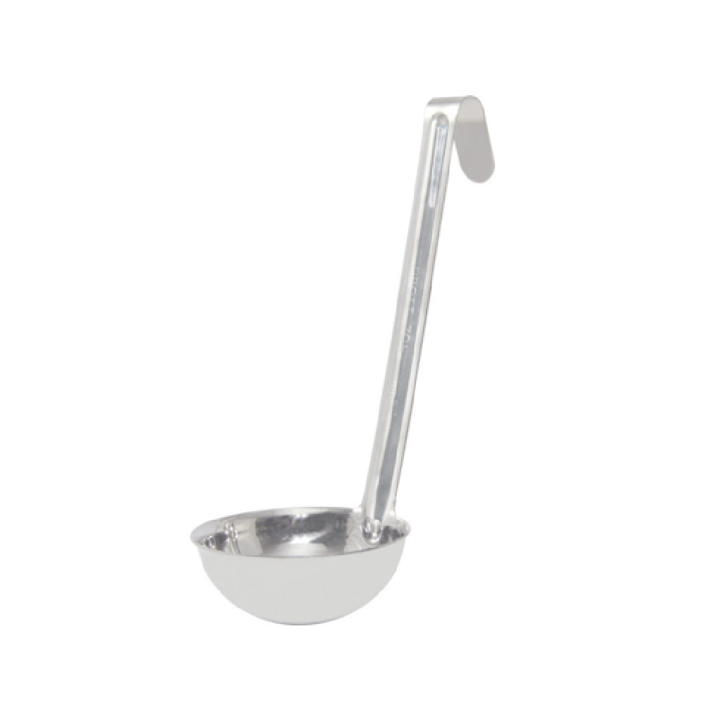The CAC China SLD6-40 Ladle 4 Oz. Bowl 6" Hooked Handle is a premium stainless steel kitchen tool designed for both professional and home use. This one-piece ladle features a 4-ounce bowl capacity, making it ideal for precise serving in culinary settings ranging from bustling restaurant kitchens to cozy home dining rooms. The 6-inch hooked handle offers convenience and ease of use, ensuring stability and grip during use. Constructed from durable stainless steel, this ladle provides longevity and resistance to wear, promoting hygiene and easy maintenance. Its robust build is suitable for high-volume environments, as evidenced by its packaging of 120 units per case, catering to bulk purchase needs for large-scale operations. The CAC China SLD6-40 Ladle is not only efficient but also versatile, serving well in industries where accuracy and durability are paramount, such as catering services, hotels, and institutional food service. Its practical design and high-quality material make it a standout choice for those seeking reliable kitchenware that meets the demands of various market segments within the food industry.