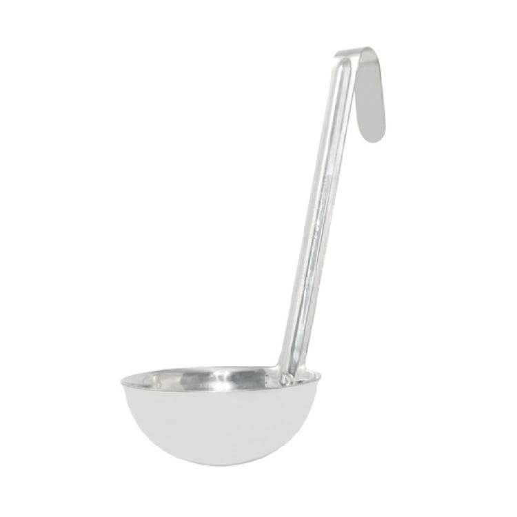 The CAC China SLD6-60 Ladle 6 Oz. Bowl 6" Hooked Handle is a one-piece, stainless steel ladle engineered for efficiency and durability in professional culinary settings. With a bowl capacity of 6 ounces, this ladle is well-suited for precise portion control, making it an indispensable tool for chefs and food service professionals. The 6-inch hooked handle design facilitates easy storage and prevents slipping into pots or bowls, enhancing safety and convenience during use. Constructed from high-quality stainless steel, the CAC China SLD6-60 Ladle offers exceptional resistance to corrosion and staining, ensuring long-lasting performance even in high-volume environments. Each case contains 120 units, making it a cost-effective choice for large-scale operations such as restaurants, catering services, and institutional dining facilities. This ladle's seamless construction not only enhances its aesthetic appeal but also makes cleaning straightforward, thus promoting hygiene standards. Its ergonomic design ensures a comfortable grip, reducing fatigue during repetitive use. The CAC China SLD6-60 Ladle represents a practical and durable solution for various sectors within the foodservice industry, combining functionality with enduring quality to meet the demands of diverse culinary applications.