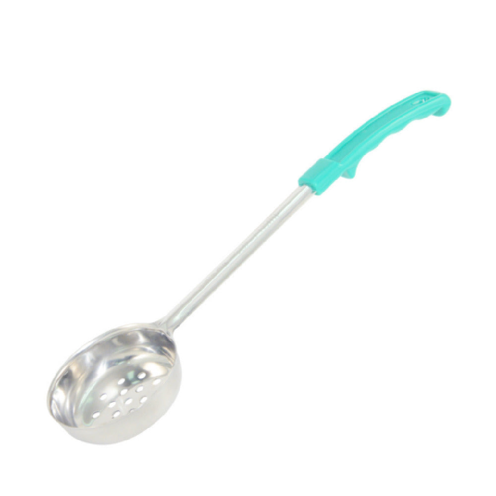 The CAC China SPCP-4GN Portion Controller 4 Oz. Perforated is an essential tool for culinary professionals who require precision and efficiency in portion control. Constructed with high-quality stainless steel, this portion controller ensures durability and longevity in demanding kitchen environments. Its 4-ounce capacity is ideal for consistently measuring and serving uniform portions, which is crucial for maintaining cost-effective operations and meeting nutritional guidelines in both commercial and institutional settings. The perforated design of the scoop allows for efficient draining of excess liquids, making it particularly useful for serving foods like vegetables or pasta where liquid retention is a concern. Additionally, the portion controller features a green handle, which can help in quickly identifying the tool amidst a busy kitchen or for color-coded usage based on specific food types or dietary requirements. Each case contains 72 of these portion controllers, providing ample supply for large-scale operations such as cafeterias, catering services, or restaurant chains. The CAC China SPCP-4GN Portion Controller is a reliable choice for food service professionals seeking to optimize portion control while maintaining the highest standards of quality and consistency in food presentation and service.