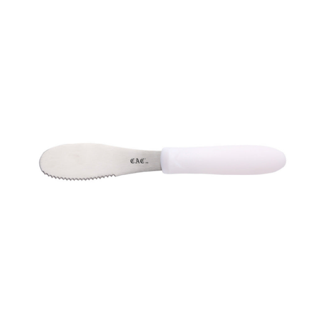 The CAC China SPSP-4WT Spreader 3-7/8" Stainless Steel is a precision-crafted kitchen tool designed to meet the diverse needs of culinary professionals and home chefs alike. With a length of 3-7/8 inches, this spreader offers a compact yet effective solution for spreading applications. The stainless steel blade ensures durability and resistance to rust, maintaining its sharpness and hygiene over time, making it ideal for long-term use in both high-volume commercial settings and everyday kitchen tasks. The serrated plastic handle in a clean white finish provides a comfortable grip, ensuring ease of use and control, especially in fast-paced environments. This ergonomic design reduces hand fatigue, enhancing efficiency in food preparation. Packed by 144 each per case, it appeals to bulk purchasers such as restaurants, caterers, and food service providers, optimizing cost-efficiency for large-scale operations. Its sleek design and durable construction make the CAC China SPSP-4WT Spreader an indispensable tool, supporting various culinary techniques with precision and reliability. This spreader stands out for its blend of functionality and aesthetic appeal, offering a tailored solution for spreading tasks in kitchens worldwide.