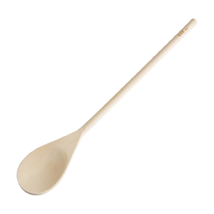 The CAC China SPWD-18 Spoon 18"L 1/2" Dia. Handle Non-scratch is a versatile and practical tool designed for professional kitchens and home cooking enthusiasts alike. This spoon, measuring 18 inches in length, features a 1/2 inch diameter handle, ensuring a comfortable grip and ease of use during meal preparations. Made from wood, it is specifically crafted to be non-scratch, making it ideal for use with non-stick cookware and delicate surfaces, thereby maintaining the integrity of your pots and pans over time. Each spoon is individually packed in a poly bag with a colored hang tag, offering convenient and attractive packaging that is suitable for retail display. With packaging of 8 dozen per case, this product is well-suited for bulk purchasing by commercial establishments such as restaurants, catering services, and culinary schools. The CAC China SPWD-18 Spoon combines durability with thoughtful design, providing users with a reliable kitchen accessory that complements a wide range of culinary tasks. Its robust construction and non-scratch feature underscore its utility across different market segments, ensuring that it meets the diverse needs of the foodservice industry.