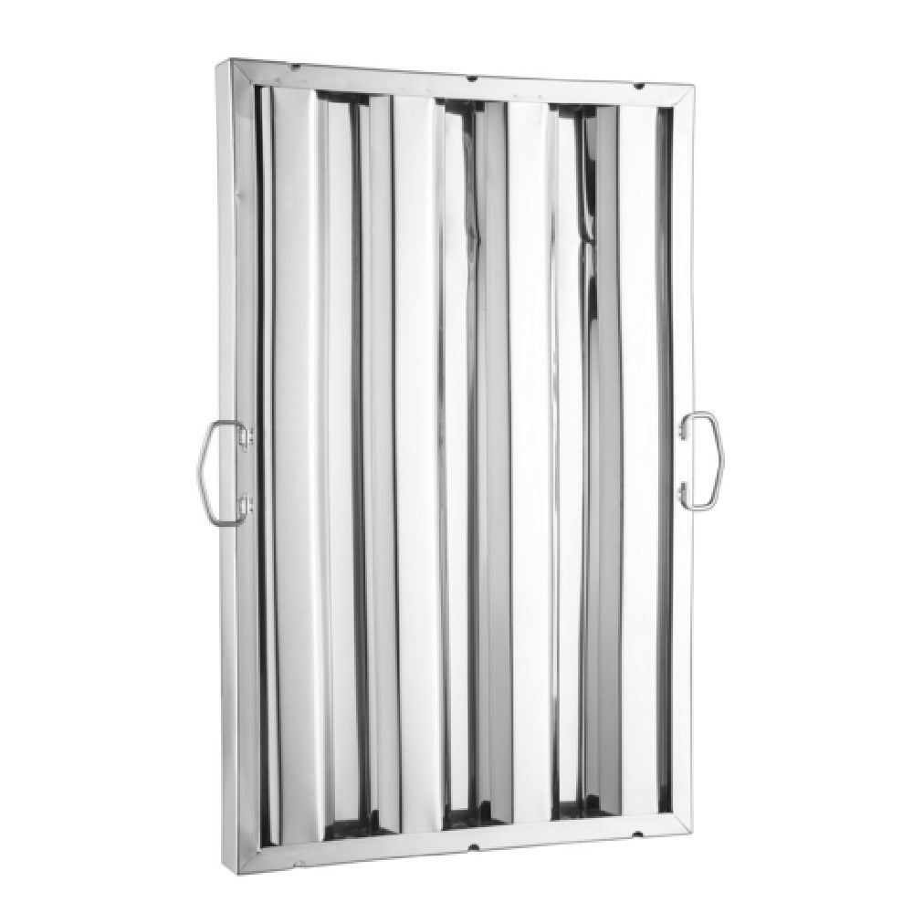 The CAC China SRHF-1625 Hood Filter, measuring 25 inches in height and 16 inches in width, is a meticulously crafted product made from high-quality stainless steel. This hood filter is designed to meet the needs of commercial kitchens, offering exceptional durability and efficiency for various food service operations. The stainless steel construction not only ensures a long-lasting product but also contributes to the filter's ability to effectively trap grease and improve air quality, which is crucial in maintaining a safe and clean cooking environment. Packed by six units per case, this product is particularly advantageous for large-scale operations that require multiple filters. The CAC China SRHF-1625 Hood Filter is a practical choice for restaurant owners and chefs who prioritize hygiene and safety without compromising on quality. Its specific dimensions make it compatible with a wide range of hood systems, providing versatility and ease of installation. This product stands out in the market for its robust construction and reliable performance, making it a valuable asset for any professional kitchen seeking to enhance its operational standards. Whether for a bustling restaurant or a compact café, this hood filter is engineered to meet diverse needs efficiently.