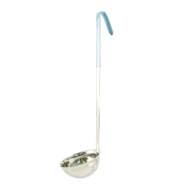 The CAC China SSLD-60TL Ladle 6 Oz. 14-3/4"L is a precision-crafted kitchen utensil designed to meet the demanding needs of both professional chefs and home cooks. This ladle features a one-piece construction, enhancing its durability and reliability in high-traffic kitchens. The stainless steel material ensures long-lasting performance and resistance to rust and staining, making it ideal for frequent use in commercial settings. With a generous 6-ounce capacity, this ladle is perfect for serving soups, sauces, and stews, offering precise portion control. The teal handle adds a touch of color and is ergonomically designed to provide a comfortable grip, reducing hand fatigue during extended use. Measuring 14-3/4 inches in length, it allows for easy reach into deep pots and containers, facilitating efficient service. The CAC China SSLD-60TL Ladle is packed by 120 each per case, catering to businesses that require bulk purchasing to maintain their operations effectively. This product is particularly valuable in the food service industry, where speed and efficiency are paramount. Its sturdy construction and user-friendly design make it a trusted tool for culinary professionals and a dependable choice for enhancing kitchen productivity.