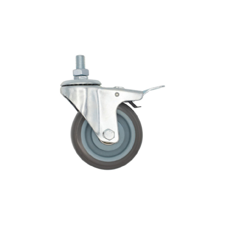 The CAC China SSPR-CB Caster 4" With Brake is an essential component for enhancing mobility and stability within any professional setting. Designed specifically for the SSPR Series, this caster measures 4 inches in diameter, providing a reliable and smooth rolling experience across various surfaces. The inclusion of a brake offers an added level of control, allowing users to securely position their equipment or furniture, preventing unintended movement. Each set is packed with four casters per case, ensuring comprehensive support and ease of installation. The CAC China SSPR-CB Caster 4" With Brake is ideal for a wide range of industries, from food service to manufacturing, where mobility and stability are crucial. By integrating these casters, businesses can improve the efficiency and safety of their operations, facilitating easy transport and secure placement of equipment. This product stands out due to its robust construction and practical design, catering to the diverse needs of different market segments seeking reliable solutions for their mobility requirements.