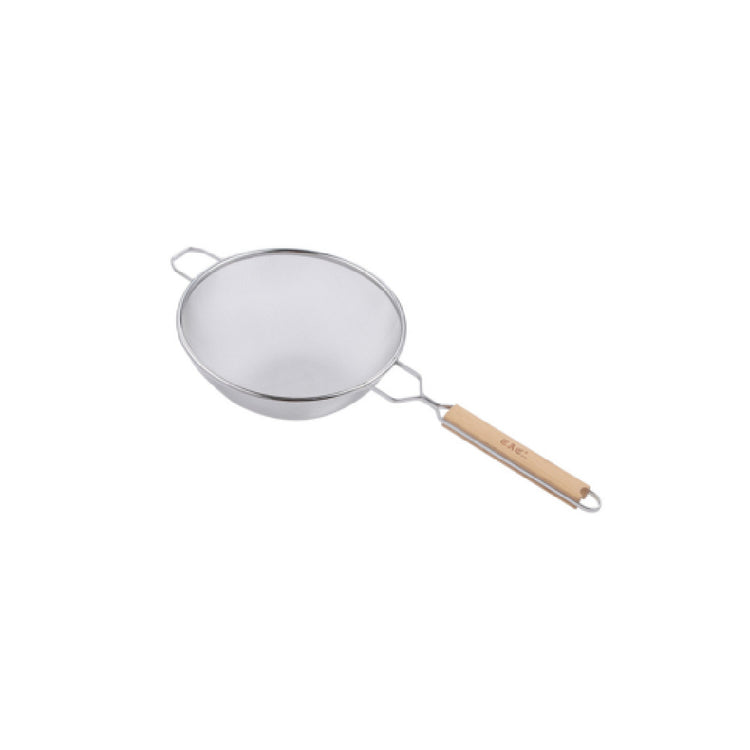 The CAC China SSTR-10D Mesh Strainer, featuring a 10-1/4" diameter, is an essential tool for culinary professionals and home chefs alike. Constructed with a double-layer mesh design, this strainer offers enhanced durability and efficiency in straining tasks, ensuring a finer filtration for liquids and smaller food particles. The strainer's stainless steel composition provides robust resistance to corrosion and staining, making it an ideal choice for heavy-duty use in various kitchen environments. Complementing its sturdy build, the SSTR-10D features a wooden handle that not only adds a touch of elegance but also ensures a comfortable grip, reducing hand fatigue during prolonged use. This mesh strainer is packed by 48 each per case, catering to the needs of large-scale food service operations, including restaurants, catering businesses, and institutional kitchens. Its versatile design makes it suitable for a wide range of applications, from straining soups and sauces to sifting dry ingredients. The SSTR-10D Mesh Strainer by CAC China combines functionality with quality, offering a reliable solution for diverse straining requirements in the culinary industry.