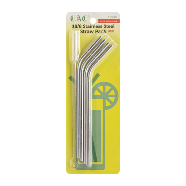 The CAC China STRA-8B Reusable Straw is a versatile and environmentally-conscious option for consumers and businesses looking to reduce single-use plastic waste. This straw features a diameter of 1/4 inch and a length of 8-1/2 inches, making it suitable for a variety of beverages, from refreshing iced drinks to smoothies. Its bendable design adds convenience and comfort to the drinking experience. Crafted from high-quality stainless steel, the STRA-8B offers durability and resistance to wear and tear, ensuring longevity and repeated use. Each pack contains five reusable straws, with 48 packs per case, catering to both individual consumers and larger establishments like restaurants and cafes that prioritize sustainability. The stainless steel construction not only provides a sleek and modern appearance but also ensures easy cleaning and maintenance. By choosing the CAC China STRA-8B Reusable Straw, users contribute to reducing their environmental footprint while enjoying a reliable and stylish product. This straw is an ideal choice for eco-conscious individuals and businesses committed to minimizing their impact on the planet.
