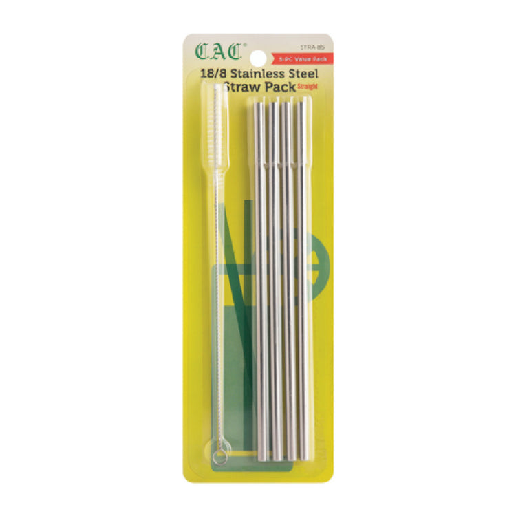 The CAC China STRA-8S Reusable Straw 1/4" Dia. X 8-1/2"L Straight is a high-quality product designed to meet the increasing demand for sustainable alternatives in the food and beverage industry. Constructed from durable stainless steel, this straw measures 1/4 inch in diameter and 8-1/2 inches in length, making it a versatile choice for a variety of drinks, from cocktails to smoothies. Each pack contains five straws, and they are available in cases of 48 packs, catering to both small businesses and larger establishments looking to reduce their environmental footprint. The straight design of the straw adds a sleek, modern touch to any drink presentation, aligning with contemporary aesthetic trends. It is an ideal option for restaurants, cafes, and bars committed to environmental sustainability, while also appealing to environmentally conscious consumers who prefer reusable over disposable straws. Its stainless steel construction ensures easy cleaning and long-lasting use, offering a functional and stylish solution for reducing single-use plastic waste. The CAC China STRA-8S Reusable Straw strikes a balance between practicality and eco-friendliness, supporting a greener future in the food service industry.