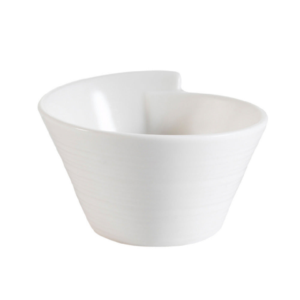The CAC China SUS-B4 Sushi Signature Bowl 9 Oz. Small is a versatile and elegantly designed dish crafted for both professional and casual dining environments. Measuring 4-1/2 inches in diameter and 2-1/2 inches in height, its conical shape provides a sophisticated presentation ideal for sushi and other culinary creations. This small, embossed bowl is constructed from high-quality porcelain in a Bone White finish, ensuring both durability and a timeless aesthetic. Its composition makes it dishwasher, oven, and microwave safe, offering convenience and practicality for high-volume food services and home kitchens alike. The CAC China SUS-B4 is sold by the case, containing 3 dozen bowls per case, making it a cost-effective choice for restaurants, catering businesses, and event planners seeking reliable tableware solutions. Its functional design and robust build cater to the needs of various market segments within the foodservice industry, from upscale dining establishments to fast-paced sushi bars, highlighting its adaptability and enduring appeal. Whether hosting a formal event or serving everyday meals, this sushi bowl enhances the dining experience with its stylish appearance and practical features.