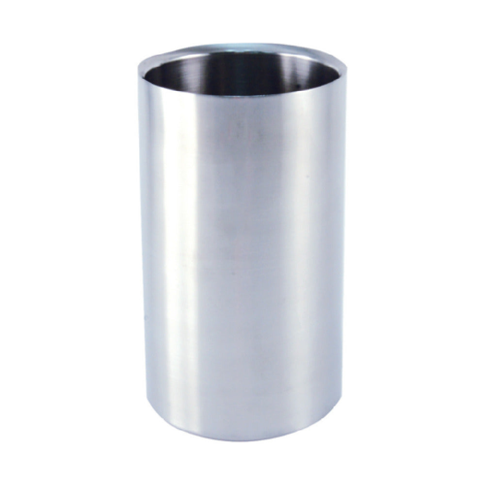 The CAC China SWCS-8 Wine Cooler 1-bottle Double-wall is crafted for wine enthusiasts and hospitality professionals alike, providing a perfect blend of functionality and elegance. This wine cooler is designed to accommodate a single bottle, making it an ideal choice for boutique restaurants, intimate gatherings, or personal use. The double-wall construction is a significant feature that aids in maintaining the wine's optimal temperature, ensuring that each pour is as enjoyable as the first. Made from high-quality stainless steel, the SWCS-8 not only offers a sleek, modern aesthetic but also promises durability and resistance to wear and tear, which is crucial for high-use environments such as catering services and banquet halls. Packed by 24 each per case, it is an efficient solution for businesses looking to stock up on reliable wine coolers. The CAC China SWCS-8 Wine Cooler is tailored for those in the food and beverage industry who value both style and substance in their dining accessories, seamlessly catering to a range of market segments from upscale dining establishments to casual, at-home entertaining. Its compact and effective design underscores its unique value as a practical and stylish addition to any setting.