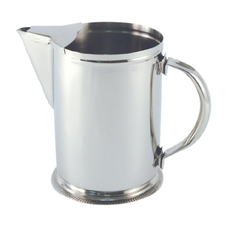 The CAC China SWPT-64G Water/Beverage Pitcher 2 Qt. (64 Oz.) with Base and Ice Guard is a versatile and practical solution for serving beverages in various settings. Crafted from durable stainless steel, this pitcher is designed to withstand frequent use in busy environments such as restaurants, hotels, and catering services. The 2-quart (64-ounce) capacity makes it ideal for serving larger groups, while the integrated base provides stability, ensuring that it remains securely in place during use. The innovative ice guard prevents ice from spilling out while pouring, making it an excellent choice for both chilled water and other cold beverages. Sold in cases of 12, this pitcher is a cost-effective option for businesses looking to equip their establishments with high-quality serving ware. Its sleek stainless steel construction not only enhances its durability but also adds a touch of elegance to any table setting. The CAC China SWPT-64G is a reliable and stylish choice for professionals in the food and beverage industry, offering a combination of functionality and design that caters to the needs of diverse market segments within the industry.
