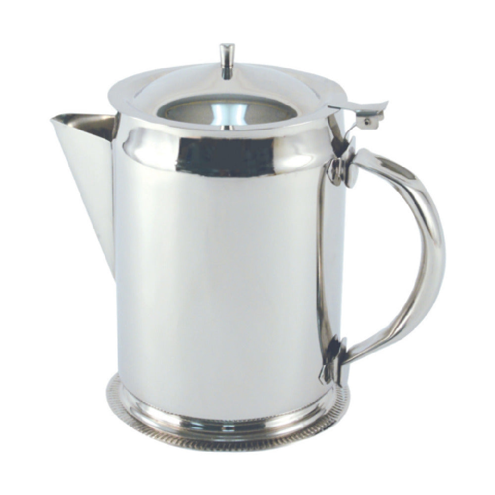 The CAC China SWPT-64L Coffee Server/Pitcher is a highly functional and durable server with a generous capacity of 2 quarts (64 ounces), making it suitable for both commercial and domestic settings. This coffee server is crafted from high-quality stainless steel, ensuring long-lasting durability and resistance to wear and tear. The inclusion of a base and hinged lid adds to its practicality, providing stability and ease of use while serving beverages. The hinged lid design allows for efficient operation, enhancing user convenience by facilitating smooth pouring and easy refilling. This product is packed with meticulous attention to detail, with each case containing 12 units to meet the needs of businesses in the hospitality and catering industries. The CAC China SWPT-64L Coffee Server/Pitcher is an ideal choice for establishments looking to offer large volumes of coffee or tea with ease and efficiency, thanks to its robust design and substantial capacity. Its stainless steel construction not only ensures a sleek and professional appearance but also facilitates easy cleaning and maintenance, promoting high standards of hygiene. This versatile server is a valuable addition to any coffee shop, restaurant, or catering service, combining practicality with an elegant design.