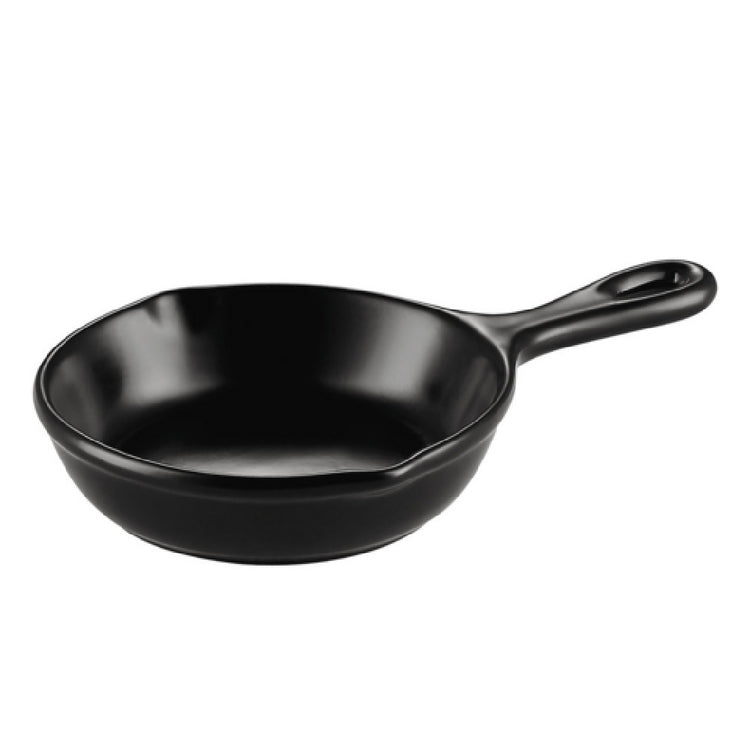 The CAC China T-FP24-BLK Festiware Skillet is a versatile piece of cookware designed for both professional kitchens and home use. With a generous capacity of 24 oz, this skillet measures 11-3/4 inches in length, 7-1/4 inches in width, and 2 inches in height, making it suitable for a wide range of cooking applications. Crafted from durable stoneware ceramic, it promises long-lasting performance and excellent heat retention. The Festiware Skillet is round and features a convenient handle, ensuring ease of use and maneuverability. Its sleek black finish adds a touch of elegance, making it suitable for both cooking and serving. Importantly, this skillet is dishwasher, oven, and microwave safe, offering exceptional versatility and convenience for busy chefs and home cooks alike. Sold by the case and packed by the dozen, it is an ideal choice for restaurants, catering services, and large-scale food preparation settings. The CAC China T-FP24-BLK Festiware Skillet seamlessly blends functionality with style, meeting the demands of various market segments within the culinary industry.