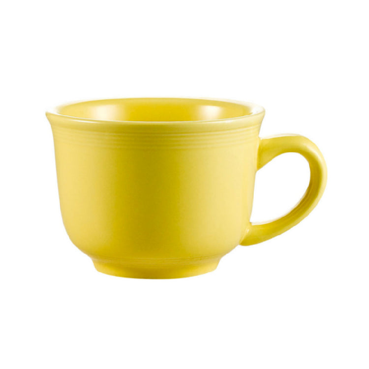 The CAC China TG-1-SFL Tango Coffee Cup is a versatile and durable choice for any coffee-serving establishment, offering a capacity of 7-1/2 oz. The cup boasts dimensions of 3-1/2 inches in diameter by 2-3/4 inches in height, which ensures a comfortable and balanced hold. Fabricated from high-quality porcelain, this coffee cup is designed to withstand the rigors of daily use, making it suitable for the bustling environment of cafes, restaurants, and catering services. The cup features an embossed pattern, adding a touch of elegance to its appearance, which complements its functional design. Its porcelain material is dishwasher, oven, and microwave safe, offering ease of cleaning and versatility in heating beverages or maintaining warmth. The vibrant Sunflower color adds a cheerful aesthetic, enhancing table presentations and customer experience. Available for purchase in cases, each containing three dozen cups, the CAC China TG-1-SFL Tango Coffee Cup provides an economical and efficient solution for businesses looking to maintain an ample supply of serving ware. This product is a practical choice for various segment markets, from small coffee shops to large-scale catering operations, offering reliability and style in one package.