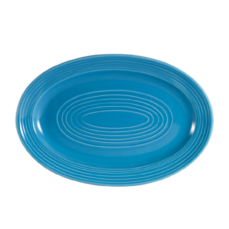 The CAC China TG-12-PCK Tango Platter is an elegant oval platter measuring 10-5/8 inches in length, 7-3/4 inches in width, and 1-1/8 inches in height. Crafted from high-quality porcelain, this platter is both aesthetically pleasing and highly functional, making it suitable for various market segments in the food service industry. Its embossed design adds a touch of sophistication, enhancing presentation while maintaining durability. The platter's construction supports versatility with its compatibility for use in dishwashers, ovens, and microwaves, catering to the dynamic needs of restaurants, hotels, and catering businesses. The platter is finished in a striking Peacock color, providing a vibrant and distinctive look that complements a wide range of table settings. Sold by the case, each case contains 24 platters, making it an excellent choice for establishments requiring bulk purchases without sacrificing quality. With a focus on both beauty and practicality, the CAC China TG-12-PCK Tango Platter meets the demands of high-volume service environments while adding a unique visual appeal to any dining experience.
