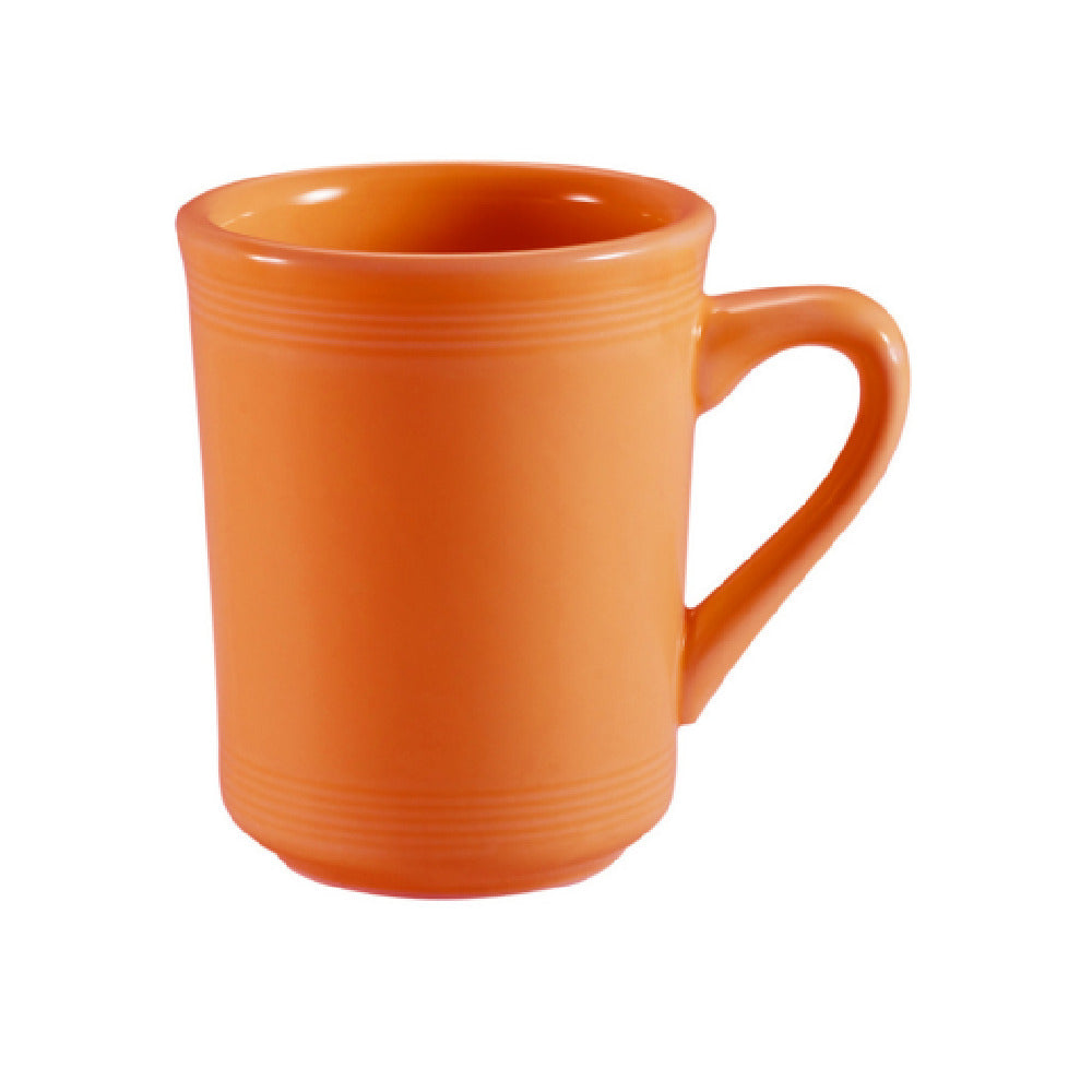 The CAC China TG-17-TNG Tango Mug is a versatile and stylish choice for various market segments, particularly in the food service and hospitality industries. This 8 oz. mug, with dimensions of 3-1/4 inches in diameter and 4 inches in height, offers a perfect blend of practicality and elegance. Its round, tall structure is designed to enhance the presentation of beverages, making it suitable for both casual and formal settings. The mug's embossed design adds a touch of sophistication, appealing to establishments aiming to elevate their dining experience. Crafted from porcelain, it ensures durability and resilience, allowing it to withstand the demands of frequent use. The Tango Mug is dishwasher, oven, and microwave safe, providing convenience and efficiency in busy environments. Available in an eye-catching Tangerine color, it brings vibrancy and a modern aesthetic to any table setting. Sold by the case, with each case containing 3 dozen mugs, it caters to bulk purchasing needs, making it ideal for restaurants, cafes, and catered events. The CAC China TG-17-TNG Tango Mug not only serves as a functional drinkware option but also as a stylish addition to any collection, delivering both utility and elegance to diverse consumer markets.
