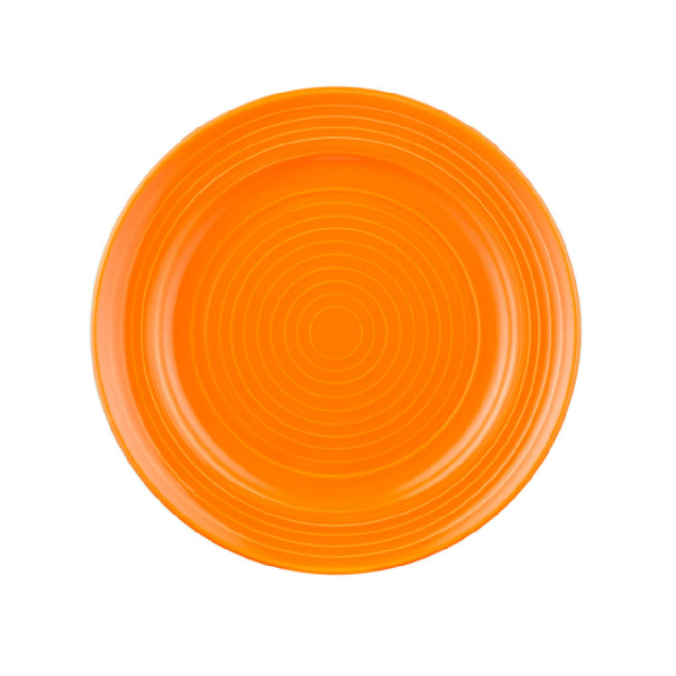 The CAC China TG-21-TNG Tango Plate 12" Dia. x 1-5/8"H Round is a sophisticated dining essential crafted from high-quality porcelain, notable for its durability and aesthetic appeal. This round plate stands out with its embossed design, making it an attractive choice for both casual and formal dining experiences. Its ample dimensions - 12 inches in diameter and 1-5/8 inches in height - provide an ideal canvas for chefs to showcase their culinary creations. The Tango Plate is designed to withstand the rigors of a busy kitchen environment, being dishwasher, oven, and microwave safe, thus offering remarkable versatility. The plate’s vibrant tangerine hue adds a splash of color to any table setting, enhancing the visual appeal of meals served. Sold by the case, each containing one dozen plates, this product is well-suited for restaurants, catering services, and hospitality venues seeking to elevate their tableware collection. The CAC China TG-21-TNG is a perfect blend of functionality and style, appealing to a wide range of market segments within the food service industry, from high-end dining establishments to casual eateries looking to make a statement with their table settings.