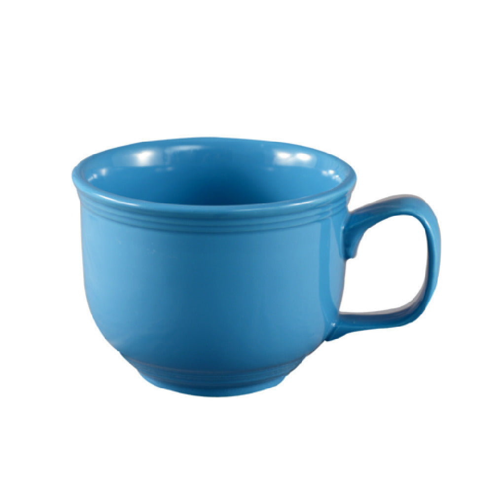 The CAC China TG-318-PCK Tango Cup 18 Oz. 4-5/8" Dia. X 3-1/2"H is a versatile jumbo cup made from durable porcelain, ideal for various segments in the foodservice industry. Its 18-ounce capacity makes it excellent for serving generous portions of beverages, catering to both individual customers and larger gatherings. The cup's dimensions, 4-5/8 inches in diameter and 3-1/2 inches in height, provide a substantial presence on any table setting, enhancing the dining experience. The embossed design adds a touch of elegance, making it suitable for upscale dining environments. This cup's construction ensures it is dishwasher, oven, and microwave safe, offering practicality and convenience for busy kitchens and food service operations. Available in Peacock color, it brings a vibrant aesthetic that can complement a variety of decors. Sold by the case and packed with 2 dozen per case, it is a practical choice for restaurants, cafes, and catering services looking to stock up on high-quality dinnerware. The CAC China TG-318-PCK Tango Cup stands out for its combination of style, functionality, and durability, making it a reliable choice for professionals seeking to enhance their service capabilities.