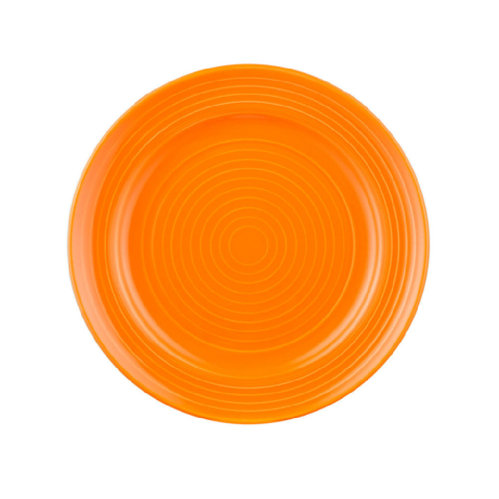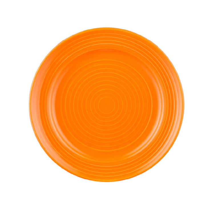 The CAC China TG-9-TNG Tango Plate 9-7/8" Dia. x 1-1/4"H Round is a versatile piece designed for a variety of dining settings, from casual eateries to upscale restaurants. This round plate, measuring 9-7/8 inches in diameter and 1-1/4 inches in height, offers a perfect balance of size and style. Made from durable porcelain, it features an embossed design that adds a touch of elegance to any table setting. Its tangerine color provides a vibrant aesthetic appeal that can enhance the presentation of your culinary creations. The Tango Plate is engineered for convenience and versatility, being safe for use in dishwashers, ovens, and microwaves, which makes it a practical choice for busy food service environments. Sold by the case, with each case containing two dozen plates, it is ideal for businesses looking to maintain a consistent and cohesive tableware collection. Whether used in a bustling restaurant, a catering event, or a home dining experience, the CAC China TG-9-TNG Tango Plate stands out for its combination of functionality, durability, and visual appeal, making it a valuable addition to any professional kitchen's arsenal.