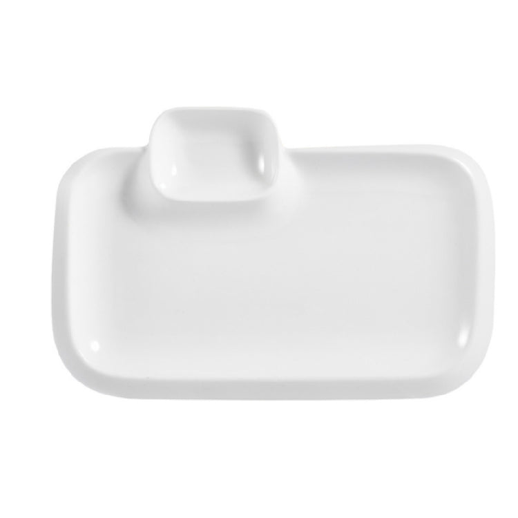 The CAC China TRY-RT10 Party Collection Platter is a versatile and elegantly designed rectangular platter measuring 10 inches in length, 6-1/2 inches in width, and 1 inch in height. Crafted from high-quality porcelain in a bone white finish, this platter is designed to enhance any dining setting. It features a dedicated sauce compartment, adding functional elegance to its design, perfect for serving appetizers, main courses, or desserts with accompanying dips or sauces. This platter is dishwasher safe, ensuring easy cleanup after use, and it is also oven and microwave safe, offering versatility and convenience for various culinary applications. The TRY-RT10 platter is designed to meet the demands of both residential and commercial environments, making it an ideal choice for restaurants, hotels, caterers, and home entertainers who value durability and style. Sold by the case, with each case packed by 1 dozen, this platter is suitable for large gatherings or events. Whether for casual or formal occasions, the CAC China TRY-RT10 Party Collection Platter combines functionality and elegance, making it a practical and stylish addition to any table setting.