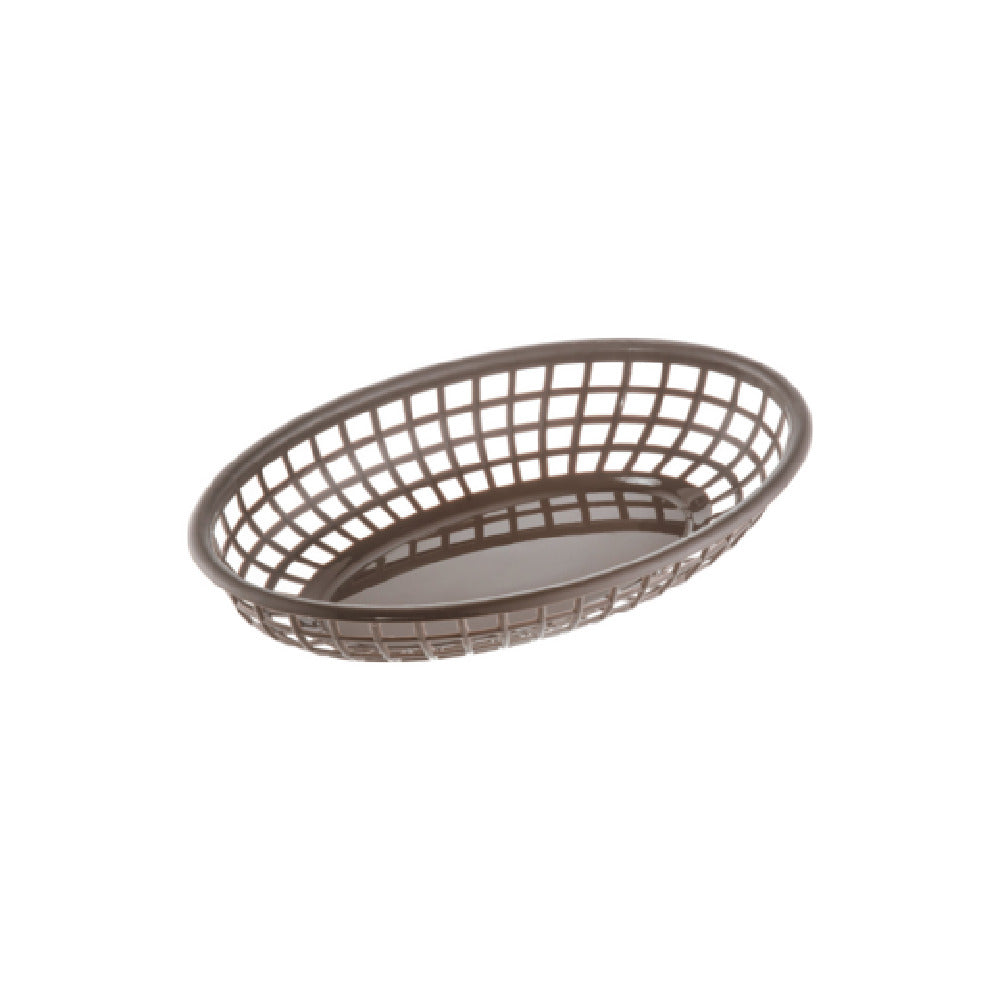 The CAC China TTFB-09BN Fast Food Basket is a practical solution for food service settings that require reliable and durable serving options. Measuring 9-1/4 inches in length, this oval basket is crafted from polypropylene, a material known for its strength and resilience, making it ideal for high-traffic environments such as fast-food restaurants and casual dining establishments. The basket's brown color adds a rustic touch, blending seamlessly with a variety of table settings and enhancing the presentation of meals. Packed by three dozen per case, it offers a cost-effective choice for businesses looking to optimize their inventory and streamline operations. Its design not only accommodates a generous serving size but also ensures easy handling, contributing to an efficient dining experience. The CAC China TTFB-09BN Fast Food Basket stands out in markets that prioritize durability, practicality, and aesthetic appeal, providing a versatile serving solution that meets the demands of diverse food service operations.
