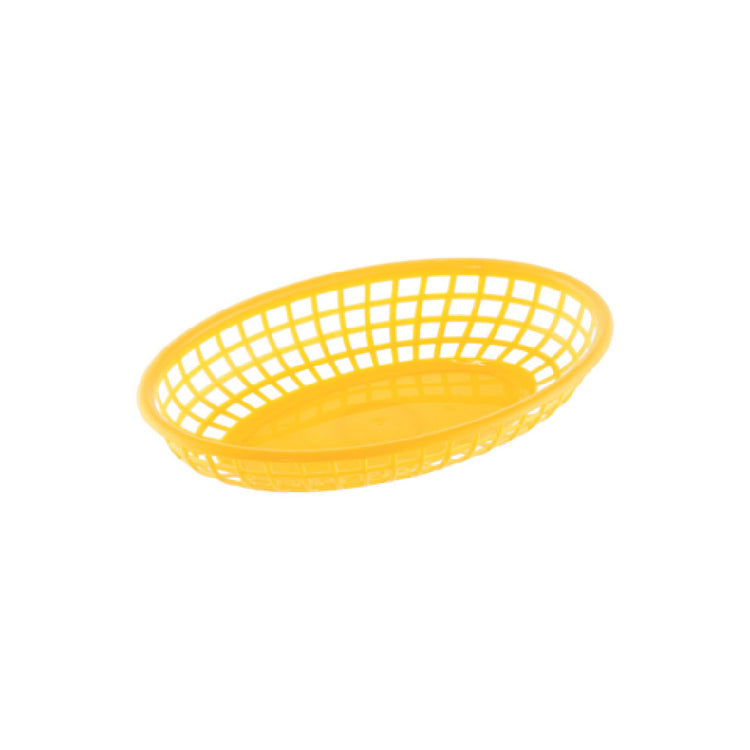 The CAC China TTFB-09YL Fast Food Basket 9-1/4"L Oval is a versatile and durable serving solution designed for the fast-paced environment of food service industries. Measuring 9-1/4 inches in length, this oval basket provides ample space for serving a variety of fast food items, making it an essential accessory for restaurants and food vendors. Constructed from high-quality polypropylene, this basket ensures longevity and resilience, withstanding frequent use in bustling kitchen settings. Its vibrant yellow color not only adds a cheerful touch to any table setting but also enhances the visual appeal of the food presentation. Sold in cases of three dozen, this product is ideal for establishments requiring bulk quantities, ensuring a consistent and uniform look across all servings. The CAC China TTFB-09YL Fast Food Basket is a practical choice for those in the restaurant and catering sectors, combining functionality with a splash of color. Its lightweight yet sturdy design makes it easy to handle and transport, while the use of polypropylene highlights its ease of cleaning and maintenance. This product exemplifies a perfect balance of form and function, catering to the demands of high-volume service operations with reliability and style.