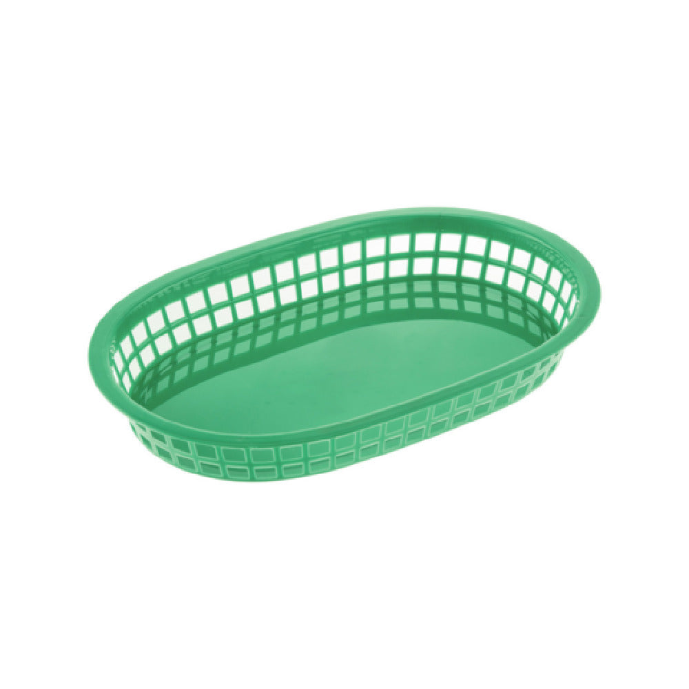 The CAC China TTFB-10GN Fast Food Basket is a versatile and durable serving solution, ideal for fast food establishments and casual dining restaurants. Measuring 10-7/8 inches in length, this oblong basket is crafted from high-quality polypropylene, ensuring a lightweight yet sturdy construction that withstands the demands of busy food service environments. Its vibrant green color enhances the visual appeal of food presentations, making it suitable for various dining settings. Packed by 12 dozen per case, the CAC China TTFB-10GN is designed for bulk purchasing, catering to the needs of large-scale operations seeking efficiency and cost-effectiveness. This product's design facilitates easy stacking and storage, optimizing space in kitchen areas. The polypropylene material is not only durable but also easy to clean, promoting hygiene and reducing maintenance time. With its practical dimensions and robust build, the CAC China TTFB-10GN Fast Food Basket offers a reliable and attractive solution for serving a variety of menu items, from burgers and fries to sandwiches and snacks, enhancing the dining experience for customers in fast-paced restaurant environments.