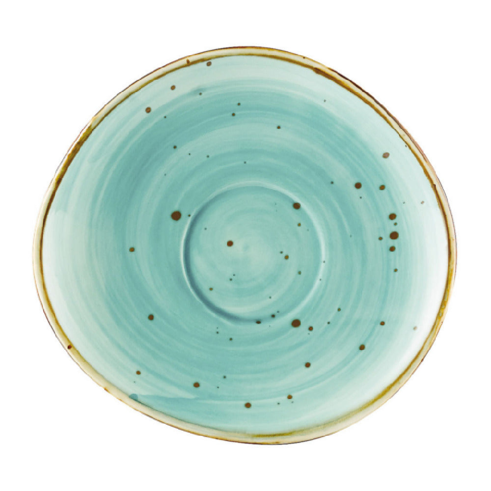 The CAC China TUS-2-TQS Tucson Saucer is a uniquely designed piece, measuring 6-1/4 inches by 5-7/8 inches with an irregular round shape. Crafted from porcelain, this saucer embodies durability and elegance, making it suitable for various dining environments. Its reactive glaze finish in a vibrant turquoise shade adds a touch of contemporary style, enhancing any table setting. This saucer is designed to fit perfectly with the TUS-1-TQS cup, providing a cohesive dining experience. With its practical features, the Tucson Saucer is dishwasher, oven, and microwave safe, ensuring ease of use and maintenance in both home and professional settings. Sold by case and packed by 3 dozen per case, it caters to the needs of restaurants, cafes, and catering services that require bulk purchases. The Tucson Saucer’s combination of aesthetic appeal and functional design makes it a versatile choice for different market segments within the hospitality industry. Whether used in fine dining establishments or casual eateries, this saucer delivers a blend of style and practicality, supporting diverse culinary presentations.