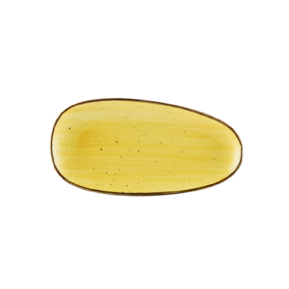 The CAC China TUS-614-SFL Tucson Platter is a remarkable piece of tableware, measuring 13 inches by 6-1/2 inches, crafted to elevate dining experiences across various segments of the hospitality industry. This oval platter is a testament to exceptional craftsmanship, being dishwasher, oven, and microwave safe, which ensures its versatility and practicality in both high-paced restaurant environments and sophisticated home dining settings. Made of high-quality porcelain, the platter is robust and durable, making it ideal for repeated use in commercial settings. Its reactive glaze in a stunning Sunflower finish provides a unique visual appeal, adding a touch of elegance and contemporary style to any table arrangement. The platter is sold by the case and packed by the dozen, catering efficiently to larger scale dining establishments seeking uniformity and consistency in their serveware. The CAC China TUS-614-SFL Tucson Platter seamlessly blends functionality with aesthetic charm, offering significant value to catering businesses, restaurants, and other dining venues that require reliable, high-quality, and aesthetically pleasing tableware solutions. Its design and material choice ensure it meets the demanding needs of the foodservice industry while also providing a stylish option for enhancing table settings.
