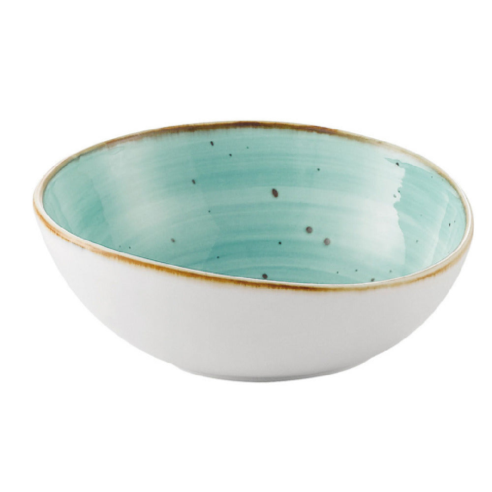 The CAC China TUS-B6-TQS Tucson Soup/Salad Bowl is a versatile dining ware piece, measuring 6 inches by 5-3/8 inches with a height of 2-3/8 inches, and a capacity of 13 ounces. This irregular round bowl is crafted from durable porcelain, ensuring long-lasting performance. It features a reactive glaze in a striking turquoise color, adding an artistic and vibrant touch to any table setting. The bowl is designed with convenience in mind, being dishwasher, oven, and microwave safe, making it suitable for both residential and commercial use. CAC China packages these bowls by the case, with each case containing three dozen bowls, making bulk purchasing straightforward for restaurants, caterers, or event planners. This Tucson bowl is an ideal choice for serving soups and salads, offering both functionality and aesthetic appeal. Its unique design and practical features make it a valuable addition to any dining setting, appealing to those in the food service industry looking for reliable and visually appealing tableware.