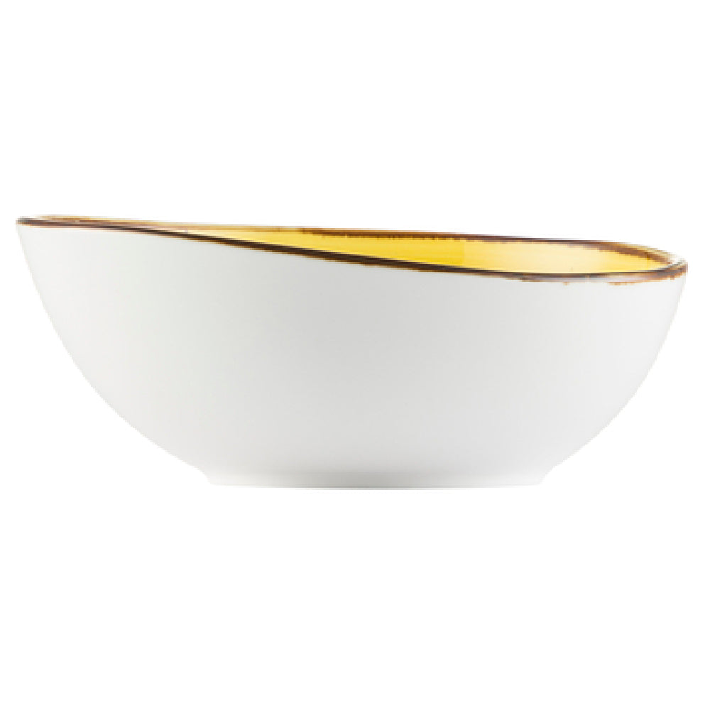 The CAC China TUS-B7-SFL Tucson Soup/Salad Bowl is a highly versatile dish, crafted to meet the diverse needs of the food service industry. With a capacity of 20 oz., this bowl is ideal for serving soups and salads in both fine dining and casual restaurant settings. The bowl's dimensions – 7-1/2 inches in diameter, 6-3/4 inches in width, and 2-5/8 inches in height – are designed to accommodate generous portions while maintaining an elegant presentation. Its irregular round shape adds a unique visual appeal, enhancing the dining experience. Manufactured from high-quality porcelain, this bowl is both oven and microwave safe, offering flexibility in food preparation and serving. The reactive glaze in a sunflower hue not only adds aesthetic value but also provides a durable, chip-resistant finish. Being dishwasher safe, it ensures easy and efficient cleaning, making it suitable for high-volume establishments. Sold by the case with each case packed by 2 dozen, it is an excellent choice for large-scale operations. The CAC China TUS-B7-SFL Tucson Soup/Salad Bowl perfectly balances functionality and style, making it a valuable addition to any culinary environment.