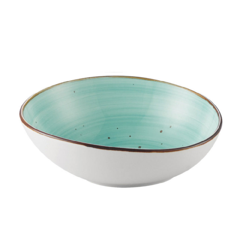 The CAC China TUS-B7-TQS Tucson Soup/Salad Bowl is a versatile dining essential designed for various settings, from casual eateries to upscale restaurants. This bowl boasts a generous 20 oz. capacity, making it ideal for serving hearty soups or fresh salads. It measures 7-1/2" x 6-3/4" x 2-5/8"H, with an irregular round shape that adds a touch of uniqueness to any table setting. Crafted from high-quality porcelain, this bowl features a reactive glaze in a striking turquoise color, ensuring both durability and aesthetic appeal. The Tucson bowl is dishwasher, oven, and microwave safe, offering convenience and versatility for busy kitchen environments. Sold by the case, with two dozen bowls per case, it is perfect for establishments looking to enhance their tableware collection with a touch of elegance and practicality. Whether for a bustling café or a fine dining restaurant, the CAC China TUS-B7-TQS Tucson Soup/Salad Bowl is a functional and stylish choice that complements a variety of dining experiences.