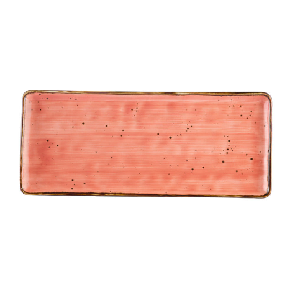 The CAC China TUS-RT61-CRL Tucson Platter is a meticulously crafted rectangular serving piece, measuring 16 inches in length, 6-3/4 inches in width, and 5/8 inches in height. This platter is designed with versatility in mind, making it an exceptional choice for a variety of culinary applications. Constructed from high-quality porcelain, it boasts a reactive glaze finish in a striking Coral hue, enhancing its aesthetic appeal. The platter is dishwasher, oven, and microwave safe, ensuring it meets the demanding needs of professional kitchens while providing ease of maintenance and usability. It is sold by the case and packed by the dozen, offering convenience for large-scale hospitality or catering operations. The Tucson Platter's distinctive features make it a valuable asset in any food service setting, where functionality and elegance are paramount. Its generous dimensions provide ample space for presenting an array of culinary creations, making it suitable for upscale dining establishments, catering services, or home entertaining. The combination of durability, safety features, and visual appeal positions the CAC China TUS-RT61-CRL Tucson Platter as a superior choice for those seeking quality and style in serving ware.