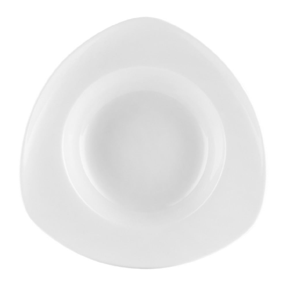 The CAC China UVS-T120 Universal Pasta Bowl is a uniquely designed serving piece with a capacity of 22 ounces, measuring 11-1/2 inches in diameter and 2-1/2 inches in height. Its triangular shape adds a distinctive touch to any dining setting, making it versatile for different segment markets, from home dining to professional culinary establishments. Crafted from porcelain, this bowl comes in a Super White finish that enhances its sleek and modern appearance. Its construction ensures durability and practicality, being safe for use in the dishwasher, oven, and microwave, which is essential for both convenience and food service efficiency. This product is sold by case, packed by 1 dozen, making it a practical choice for restaurants, catering services, or large households that require multiple units. The CAC China UVS-T120 Universal Pasta Bowl combines aesthetic appeal with functional design, ensuring it meets the needs of diverse user groups seeking quality and versatile tableware.