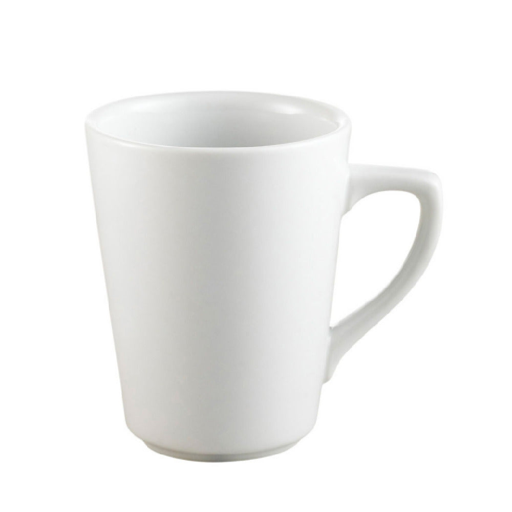 The CAC China VC-8-P Mug Collection Victory Mug 8-1/2 Oz. 3" Dia. X 4-1/4"H is a versatile addition to any dining setup, offering both style and practicality. This mug, crafted from Super White porcelain, holds 8-1/2 ounces and features a round shape with dimensions of 3 inches in diameter and 4-1/4 inches in height. Its construction ensures durability and resilience, suitable for frequent usage in various settings. The porcelain material not only provides a sleek and elegant appearance but also offers exceptional functionality, being dishwasher, oven, and microwave safe. This makes it a convenient choice for both commercial and residential environments, catering to the needs of restaurants, cafes, and home kitchens alike. Sold by the case, each case is packed with 3 dozen mugs, making it an efficient option for bulk purchases and large-scale operations. The CAC China VC-8-P Mug stands out for its combination of aesthetic appeal and practical features, meeting the diverse demands of the food service industry while maintaining a high standard of quality and performance.