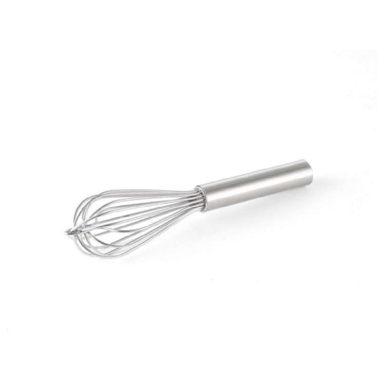 The CAC China WPFR-10S French Whip 10" is expertly engineered for durability and resilience, making it a staple in professional kitchens and culinary schools. This French whip features a 10-inch length, offering a comfortable reach for efficient mixing and whipping. Its standout design includes center-reinforced and thick wires, enhancing its strength and ensuring it withstands the rigors of heavy-duty use. The fully-sealed connection between the handle and wire not only increases the whip's structural integrity but also facilitates easy cleaning and maintenance, crucial for maintaining hygiene standards in high-volume food service environments. Crafted from premium stainless steel, this whip guarantees longevity and resistance to rust and corrosion, offering a reliable performance over time. Packed in cases of 72, the CAC China WPFR-10S French Whip is an ideal choice for large-scale operations like restaurants, catering services, and culinary institutions that require robust tools for their demanding tasks. This product’s design and construction focus on delivering excellent utility and reliability, serving as a valuable tool across various segments within the culinary industry.