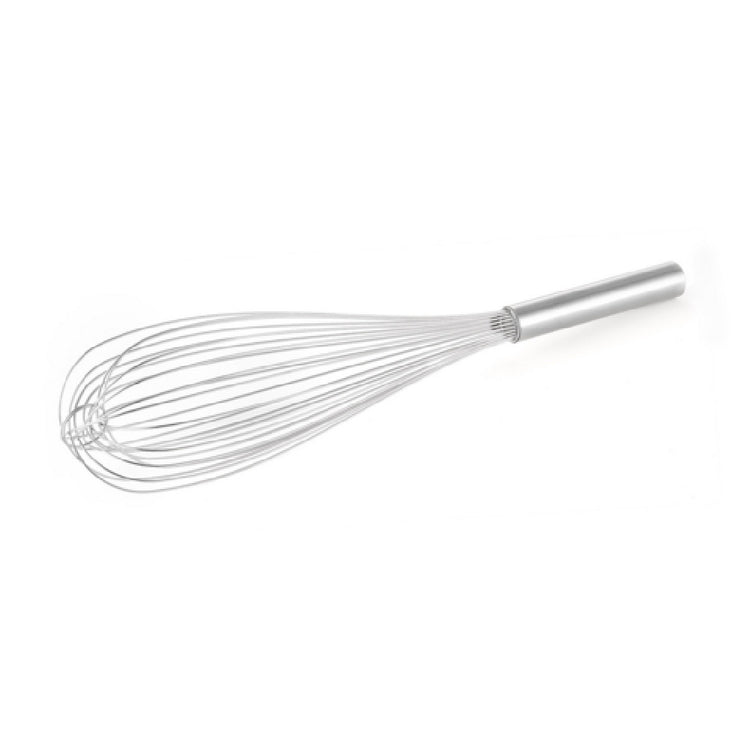 The CAC China WPPA-18S Piano Whip is a meticulously crafted kitchen tool designed for professional and home chefs alike, known for its 18-inch length that provides extended reach and versatility in mixing tasks. This piano whip features a center-reinforced structure that ensures durability and resilience, making it suitable for rigorous, heavy-duty applications in various culinary settings. The thick wires of the whip are constructed from premium stainless steel, guaranteeing resistance to rust and corrosion while maintaining optimal flexibility for efficient mixing and whipping. A notable feature of this tool is the fully-sealed connection between the handle and wires, which prevents food particles and liquids from entering, thereby enhancing hygiene and ease of cleaning. The robust design caters to the demands of commercial kitchens, while its user-friendly attributes make it equally appealing to culinary enthusiasts who value quality in their kitchen tools. With packaging in quantities of 72 per case, this product is an excellent choice for bulk purchasing, ensuring that it meets the requirements of restaurants, culinary schools, and other large-scale food preparation environments. The CAC China WPPA-18S Piano Whip stands out for its combination of strength, precision, and practicality, making it an indispensable tool in any kitchen.