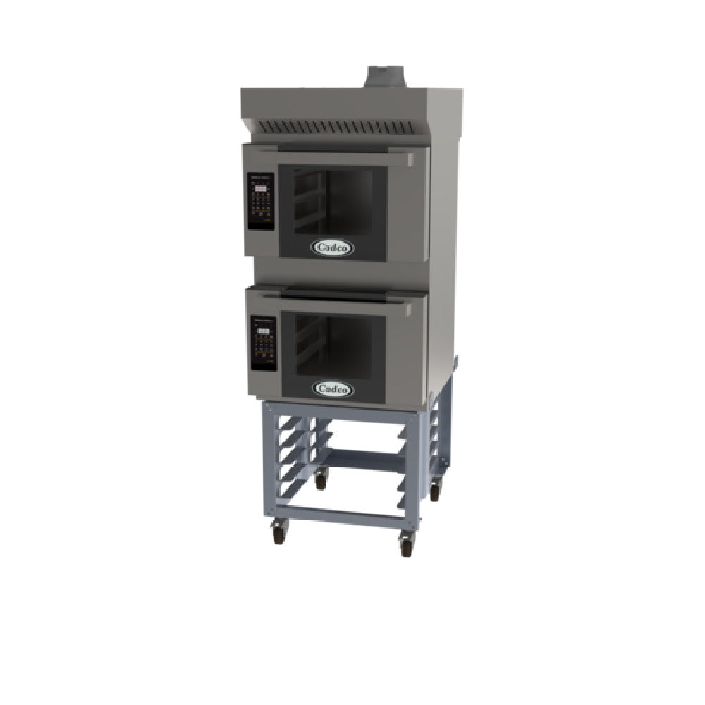 Cadco BLS-3HLD-2H Bakerlux™ LED Heavy-Duty Convection Oven Electric Double Stack Half Size With Stand & Ventless Hood
