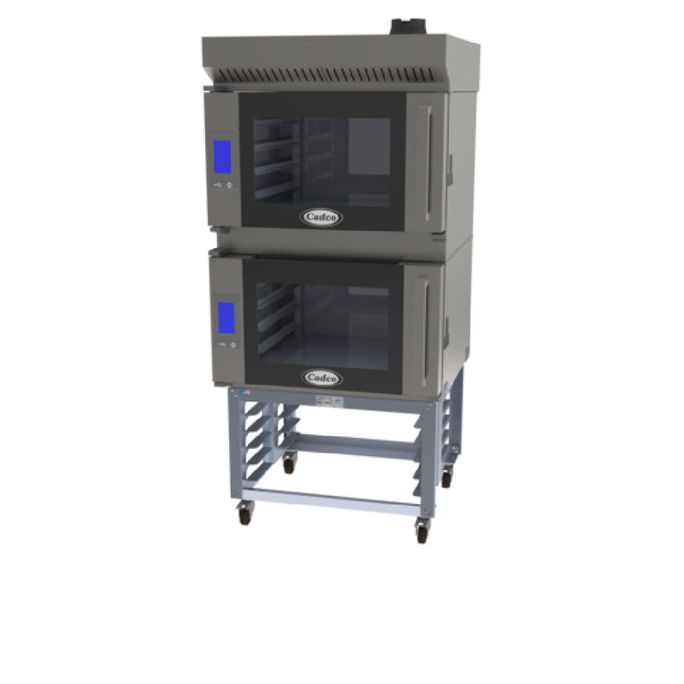 Cadco BLS-4FTR-2H Bakerlux™ TOUCH Heavy-Duty Convection Oven Electric Double Stack Full Size With Stand & Ventless Hood