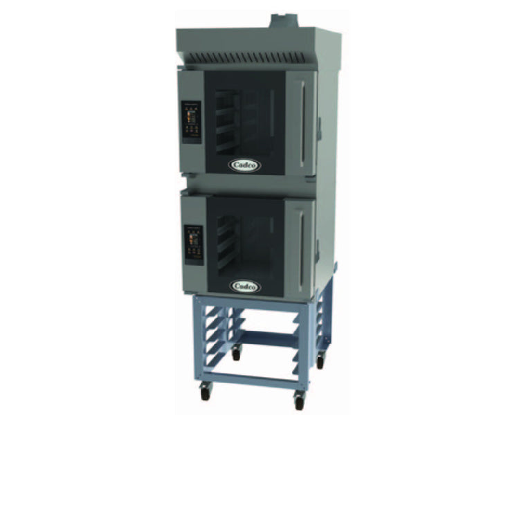 Cadco BLS-4HTR-2H Bakerlux™ TOUCH Heavy-Duty Convection Oven Electric Double Stack Half Size With Stand & Ventless Hood