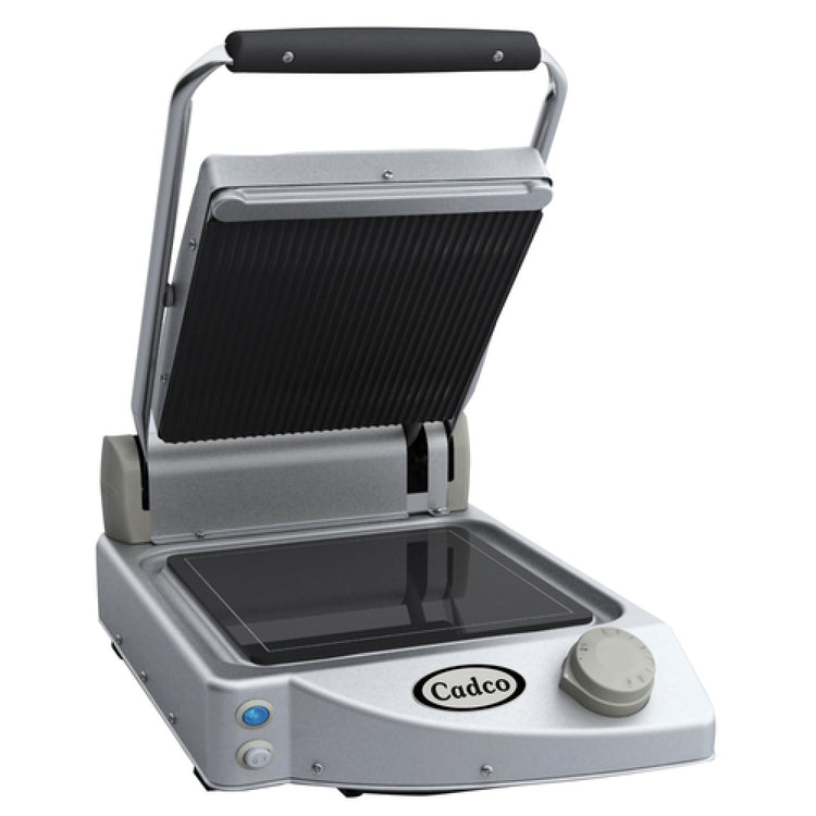 - Cadco CPG-10 Single Panini Grill Black Glass-ceramic Grill Surfaces Ribbed Top Plate