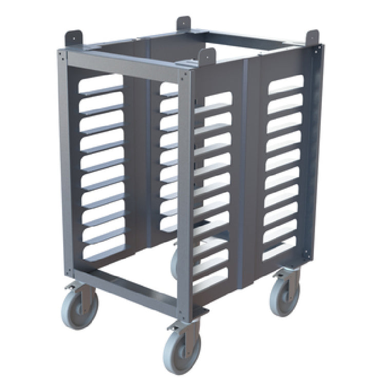The Cadco OST-34A-C Oven Stand Half Size Mobile is an essential piece of equipment for professional kitchens and catering businesses, offering a robust and highly functional design. This half-size, mobile oven stand is expertly crafted with heavy-duty aluminum construction, ensuring durability and stability for high-traffic food service environments. Its open base is equipped with pan rack slides, accommodating up to ten half-size sheet pans, though it should be noted that pans are not included with the stand. The Cadco OST-34A-C stands out with its ability to support two half-size Cadco ovens, optimizing space and efficiency in busy kitchens. For ease of mobility, the stand is mounted on four casters—two of which feature brakes and two with directional locks—providing both maneuverability and stability when needed. This versatile oven stand is not only ideal for culinary professionals seeking efficient workflow solutions but also suitable for educational institutions, catering venues, and small to medium-sized restaurants looking to maximize their kitchen operations. By combining practical design elements with mobility and capacity, the Cadco OST-34A-C serves as a reliable and adaptable component in any culinary setup.