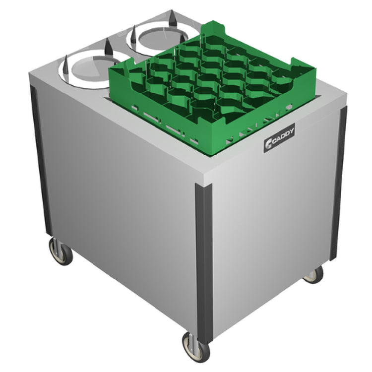The Caddy CM-2620-20 Caddy Magic Cup/Saucer Rack Dispenser Cabinet Style Without Door is a meticulously designed storage solution, tailored for establishments requiring efficient cup and saucer organization. Engineered for 20" x 20" racks, this unit boasts an impressive capacity of up to 140 cups and saucers, accommodating diameters ranging from 5-7/8" to 7-1/4". The design incorporates a self-leveling platform, ensuring stability and ease of access. Featuring two adjustable cylinder dispensers, it provides versatile storage configurations to meet diverse needs. The inclusion of plastic vertical corner bumpers offers enhanced durability and protection, making it ideal for bustling kitchen environments. Equipped with 4" swivel casters, this dispenser ensures seamless mobility, facilitating flexible placement and convenience. Although unheated, this cabinet-style dispenser is NSF certified, demonstrating its adherence to high standards of public health and safety. This product is particularly advantageous for restaurants, cafes, and catering services seeking a robust and efficient solution for their cup and saucer storage requirements. Its practical design and capacity make it a valuable asset for various segments within the food service industry, optimizing both space and functionality in professional settings.