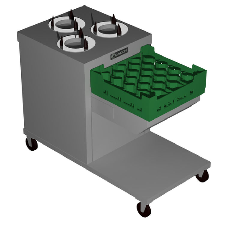 The Caddy CM-2720-C-10 Caddy Magic Cup/Saucer Rack Dispenser Cantilever Unheated is an expertly engineered solution designed to meet the rigorous demands of the food service industry. This versatile dispenser accommodates 20" x 20" racks, with an impressive capacity to hold up to 140 cups and 210 saucers, each with a diameter of up to 5-3/4". Its unique self-leveling platform, alongside three adjustable cylinder dispensers, ensures smooth and efficient handling of dishware. Constructed from high-quality stainless steel, this dispenser promises durability and long-lasting performance in any professional setting. The inclusion of 4" swivel casters enhances mobility, allowing for seamless integration into dynamic kitchen environments. This product is NSF certified, endorsing its adherence to strict health and safety standards. The unheated cantilever design of the Caddy CM-2720-C-10 makes it particularly suitable for establishments that prioritize flexibility without the need for temperature control, such as cafeterias, banquet halls, and caterers. Its robust build and functional design make it an indispensable asset for operations that require efficient dishware management, providing both reliability and ease of use.